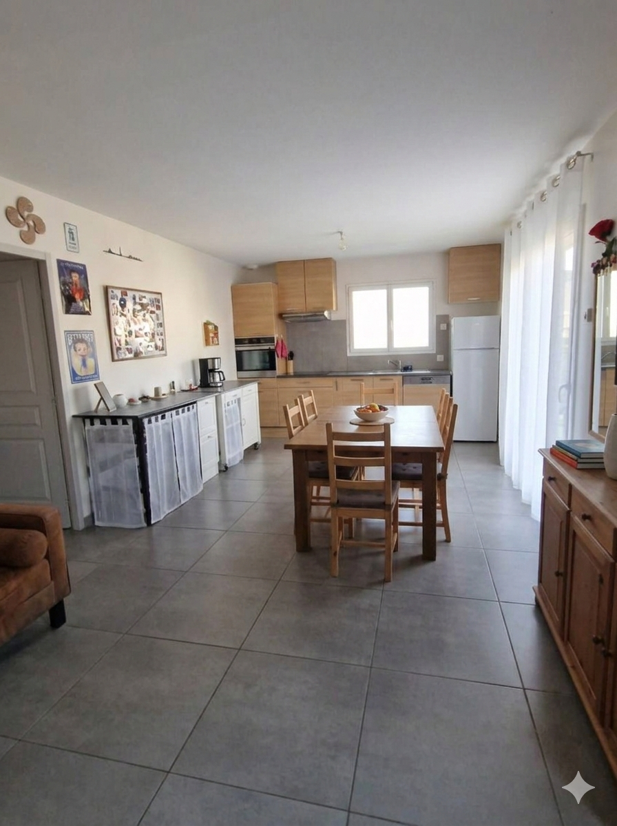 Bel appartement dans villa récente comprenant un séjour avec coin cuisine meublé et équipé, 3 chambres, une s'alle d'eau avec douche à l'italienne, un WC.Terrasse à l'avant de la maison.