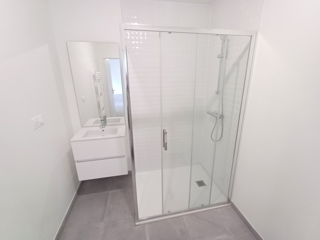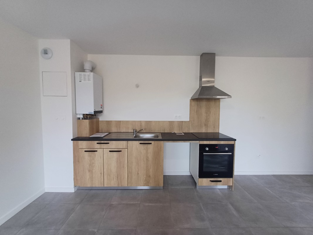 Appartement T2 de 44,7 m² situé au 3? étage avec une agréable terrasse de 8,1 m². Il se compose d'une entrée, d'une belle pièce de vie ouverte sur une cuisine équipée (hotte, plaque de cuisson, rangement, plan de travail), d'une chambre et d'une salle d'eau (meuble vasque, miroir, douche, WC). Chauffage individuel au gaz.