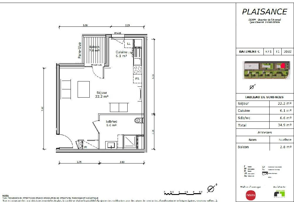 Dans la résidence de 2019 "Plaisance" T1 (n°3102) au 1er étage avec ascenseur. Il comprend un séjour avec placard à l'entrée, cuisine simple ouverte sur la pièce de vie donnant sur balcon, une salle d'eau avec toilettes. Chauffage et eau chaude par réseau urbain, inclus dans le loyer. Disponible de suite. Honoraires en sus : 383 euros TTC (dont 104 euros d'état des lieux)Année de construction : 2019