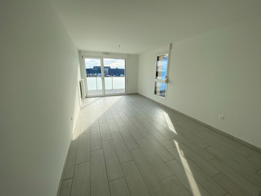 Appartement T3 de 58,4 m² avec un agréable balcon de 10 m². Il se compose d'une entrée, d'une pièce de vie ouverte sur une cuisine équipée (évier, meuble sous évier, plaque de cuisson, hotte, meubles de rangement) prolongée par l'extérieur. Vous profiterez également de deux chambres, d'une salle de bains (meuble vasque, miroir, baignoire) et WC séparés. Chauffage et eau chaude comprise dans les charges.