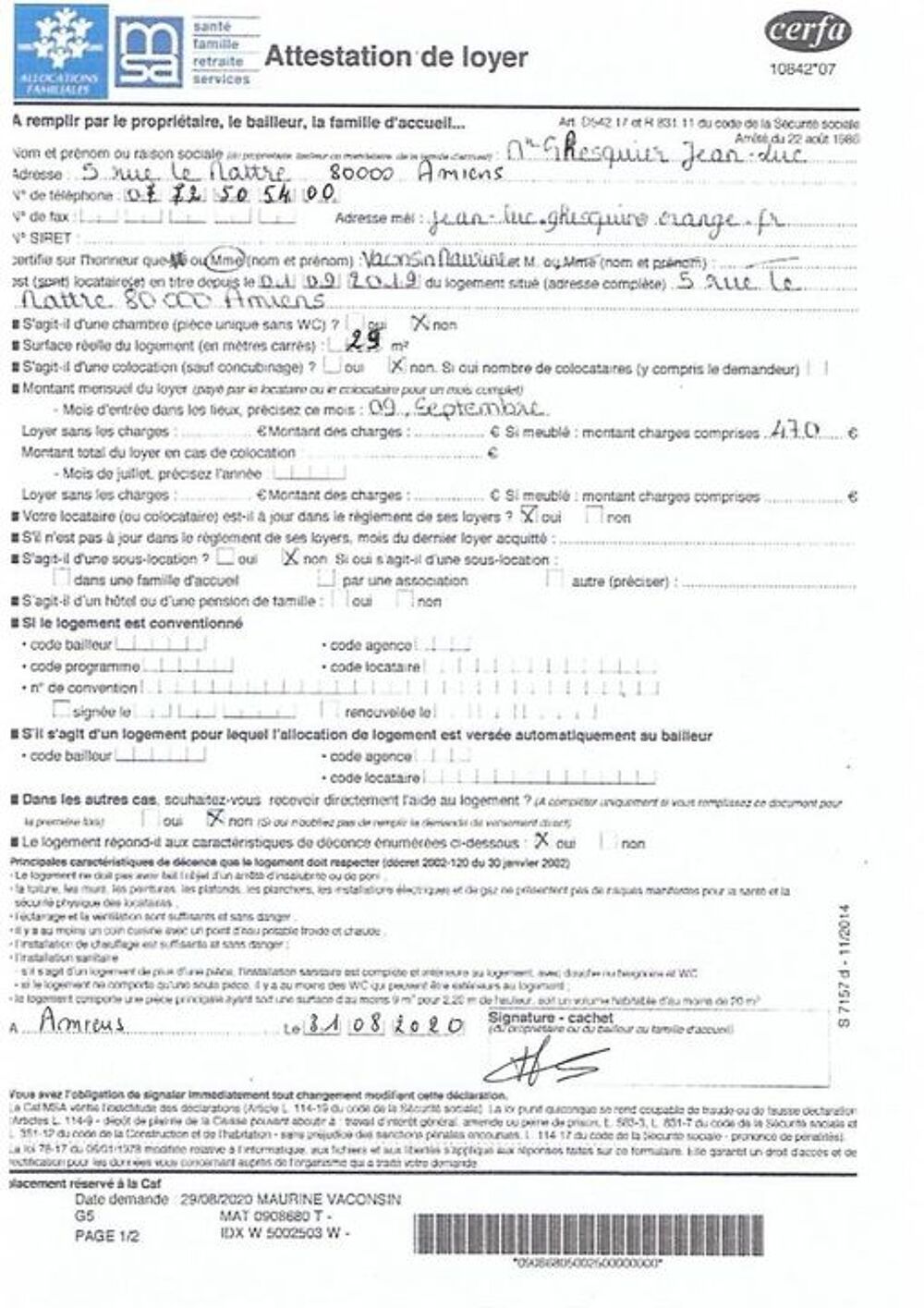Dépôt de garantie : 360 €
