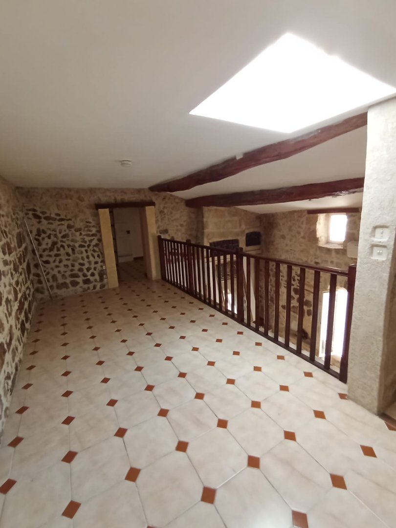 Murs en pierre apparente, maison construite au sein de l'ancien chateau du village, bien entretenue et pleine de charme.