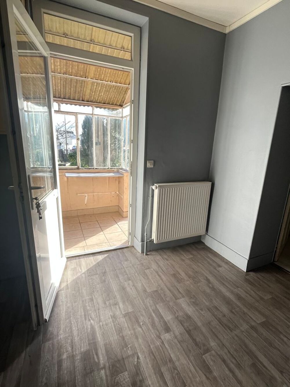 A louer rue Lamartine, maison mitoyenne avec entrée sous véranda, cuisine, séjour et une chambre. Chauffage individuel fuel.Jardin privatif avec petit atelier. Cave. Garage avec porte basculante.