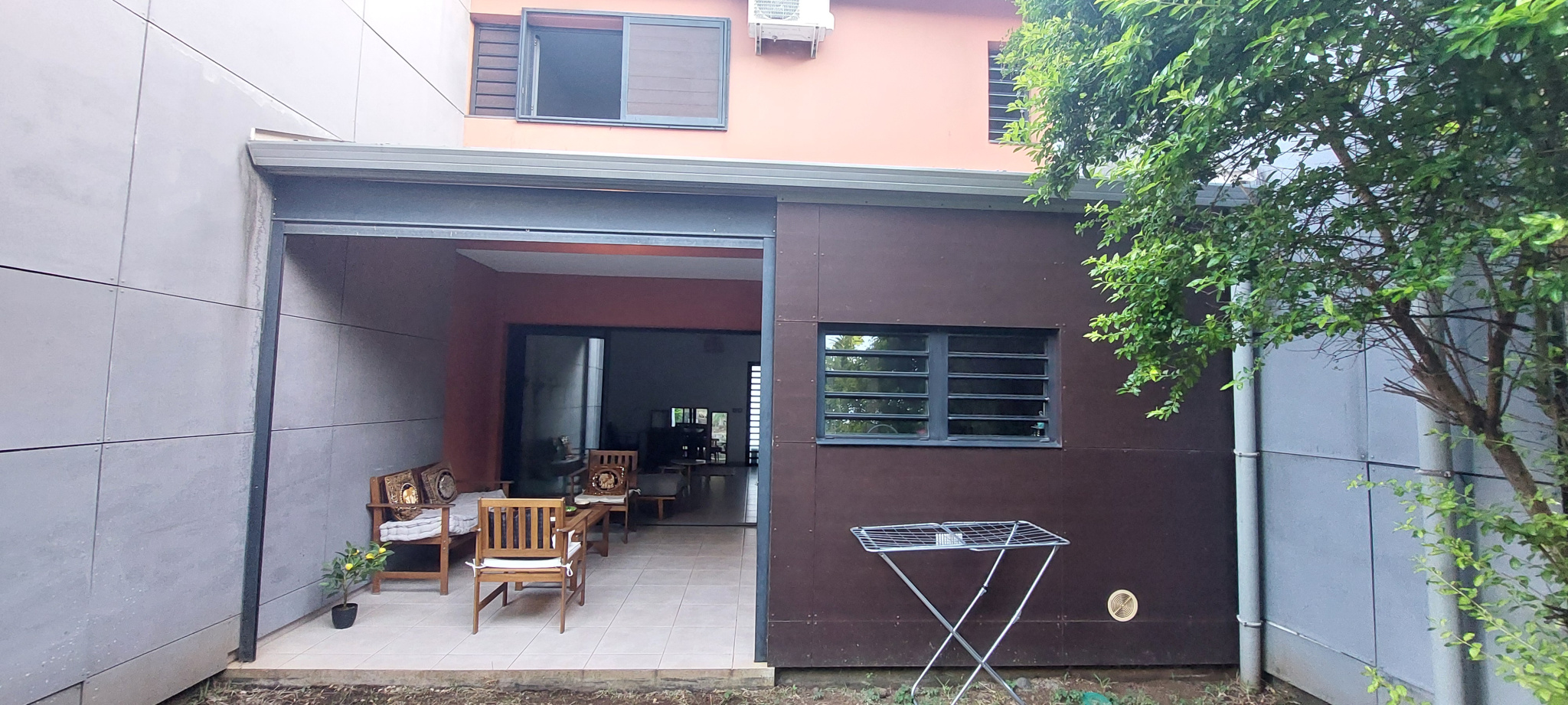 Située dans un lotissement privé résidentiel au Domaine de Bellevue, proche de Beauséjour Sainte-Marie, maison mitoyenne T3 à étage de 70 m2 avec 1 varangue de 10 m2, 1 jardinet privatif de 57m2 et 2 places dans un parking sécurisé.Maison louée en bail meublé d'1 an renouvelable, dispose au RDC d'un débarras extérieur juste avant la porte d'entrée, 1 séjour avec brasseur d'air donnant sur une terrasse et un jardinet sans vis à vis, une cuisine équipée, un wc/lave-mains; à l'étage, deux chambres avec placard et brasseurs d'air dont 1 climatisée, une salle de bains avec vasque et 1 coin wc, petite résidence calme et sécurisée avec portail automatique.