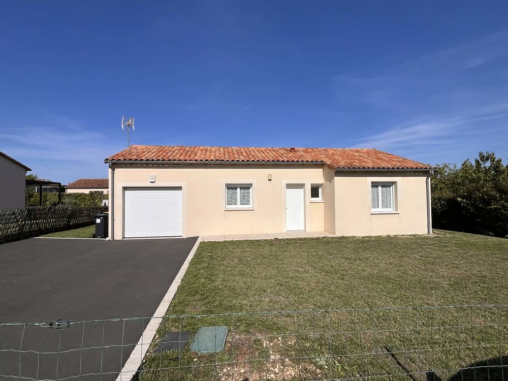 Maison avec terrain dans petit lotissement très calme. Grande pièce à vivre avec cuisine équipée et aménagée. Un placard à l'entrée. Deux chambres avec placard, une salle d'eau fonctionnelle.Fenêtres PVC double vitrage avec volets roulants électriques.
