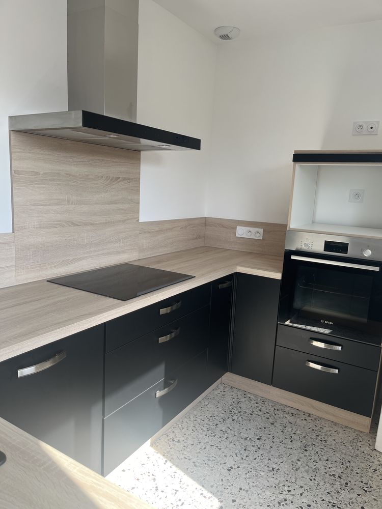 A louer maison élevée sur cave, garage, cuisine d'été.A l'étage, habitation avec cuisine récente entièrement aménagée et équipée: éléments de rangements et bar assortis, plaque de cuisson, hotte, four, lave-vaisselle. Séjour de 18m² avec balcon. Deux chambres, placards. Salle d'eau avec douche à l'italienne. Excellent état. Chauffage individuel gaz, chaudière neuve. Terrain clos et deuxième garage. Disponible début juillet 2026.