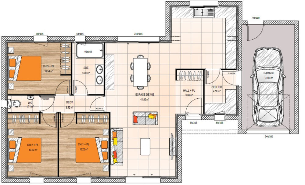 Terrain proposé par un partenaire foncier selon disponibilités et autorisation de publicité au prix de 93 340 €. Hors droit d'enregistrement et frais de notaire. Maison proposée, avec un contrat de construction de maison individuelle, dans le cadre de la loi du 19/12/1990, au prix de 208 110 € (Hors branchements et raccordements, papiers peints, peintures, revêtement de sol dans les chambres, qui sont chiffrés dans les travaux qui restent à charge du client. Tarif modifiable sans préavis). Étiquette énergie : A. Différents modèles disponibles pour ce terrain. Assurances et garanties du constructeur comprises (RC professionnelle, décennale, dommage ouvrage).