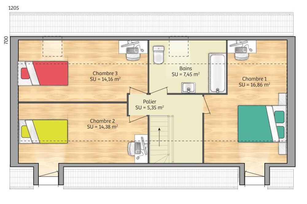 Nombre de chambres : 3.
