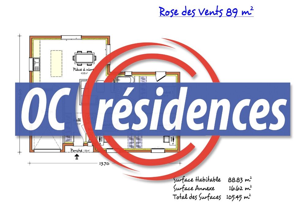 La Rose des Vents 89 est une maison moderne, bien pensée, privilégiant le confort dans toute la maison. Elle dispose d'une surface de 89 m² habitable, de plain-pied, optimisée et composée d'un hall d'entrée avec WC et placards, d'un salon séjour de 41 m² qui bénéficie de larges baies vitrées pour un plein ensoleillement, et d'un coin nuit avec 3 grandes chambres et une belle SDB. Un Garage de 15 m² viendra agrémenter le confort de votre maison.
