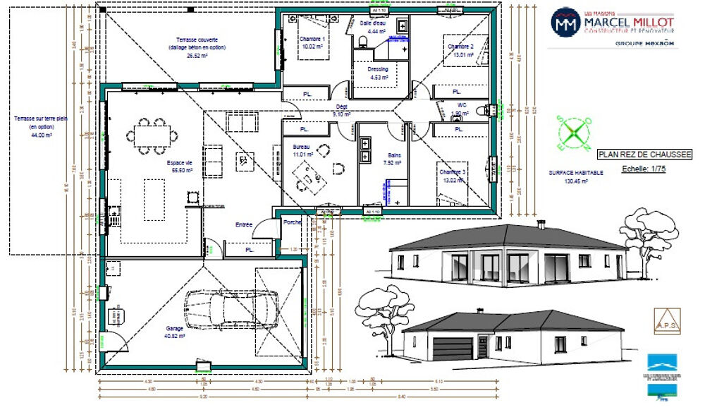 Surface habitable : 130m2.