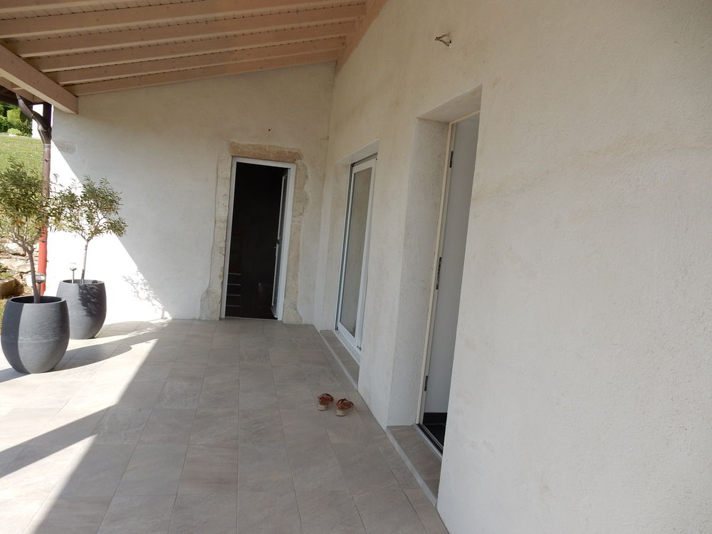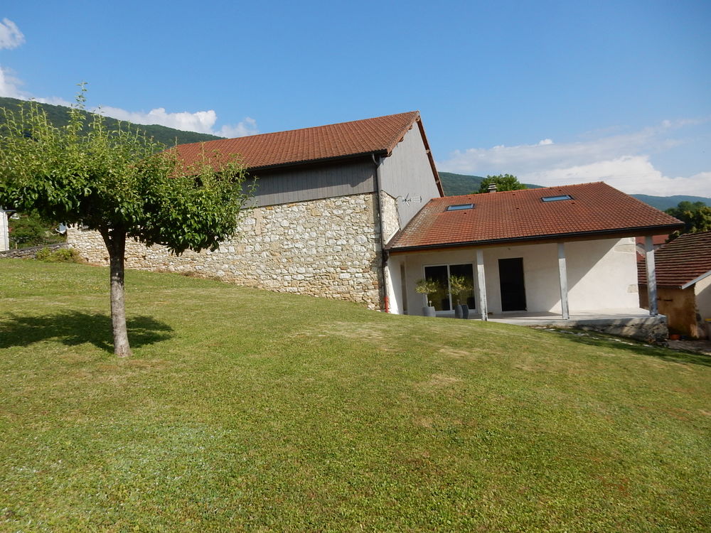 Située à 12 km de Bellegarde et gare TGV, à Craz (commune d'Injoux-Genissiat 01200), jolie maison en Pierre (entièrement rénovée) de 64m²hab de type 3 (avec possibilité d'extension), comprenant une cuisine équipée ouverte sur un salon/séjour, 1 chambre au rez-de-chaussée, une salle de douche et toilette, à l'étage une mezzanine (31m² au sol), une Terrasse couverte, un s/sol avec caves et buanderie (43m²). Dépendance : une grange de 63m² au sol à exploiter, le tout sur 659m² de terrain. Très belle vue dégagée sur les Alpes et Mont Blanc. Très calme.
