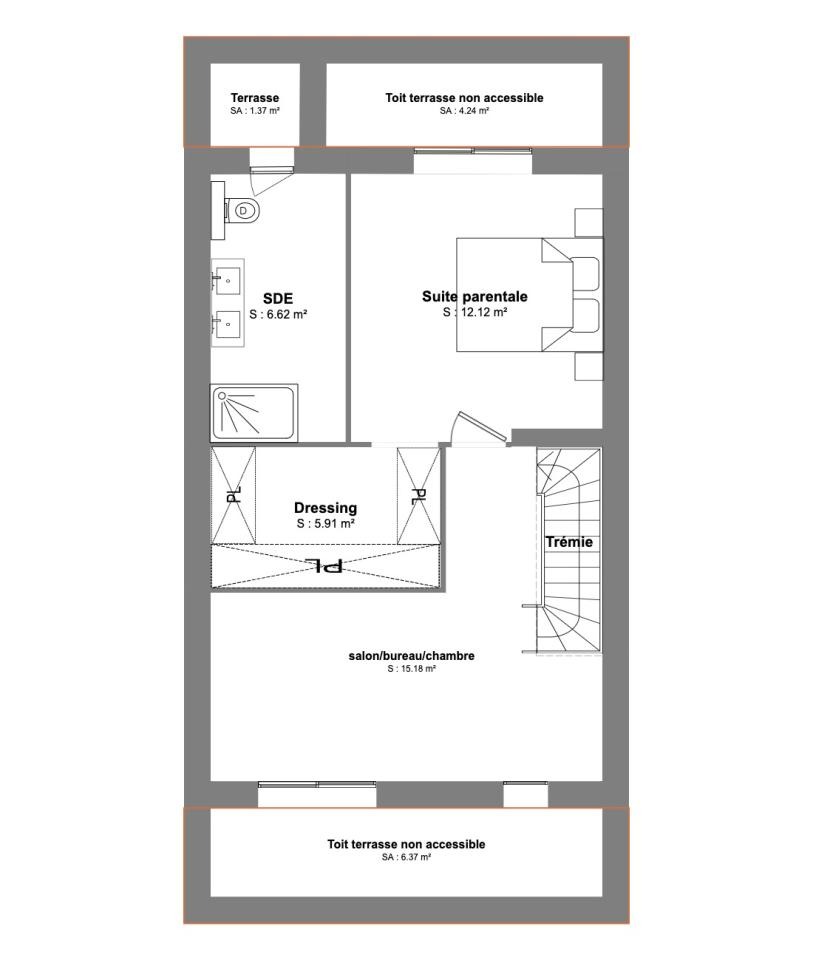 Plans réalisés à la demande, en fonction de vos souhaits. Possibilité de construire 165m2 habitables maximum (hors sous-sol)