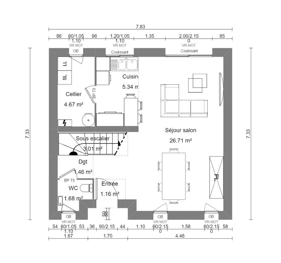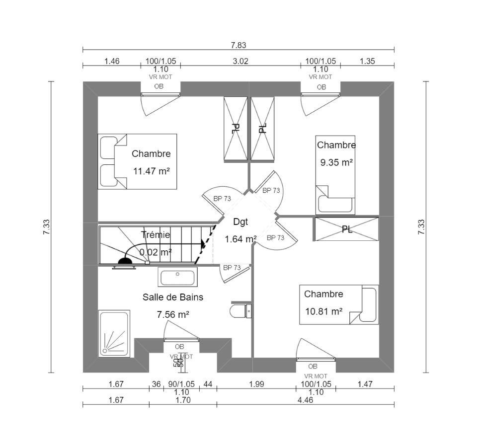 Surface habitable : 80m2.