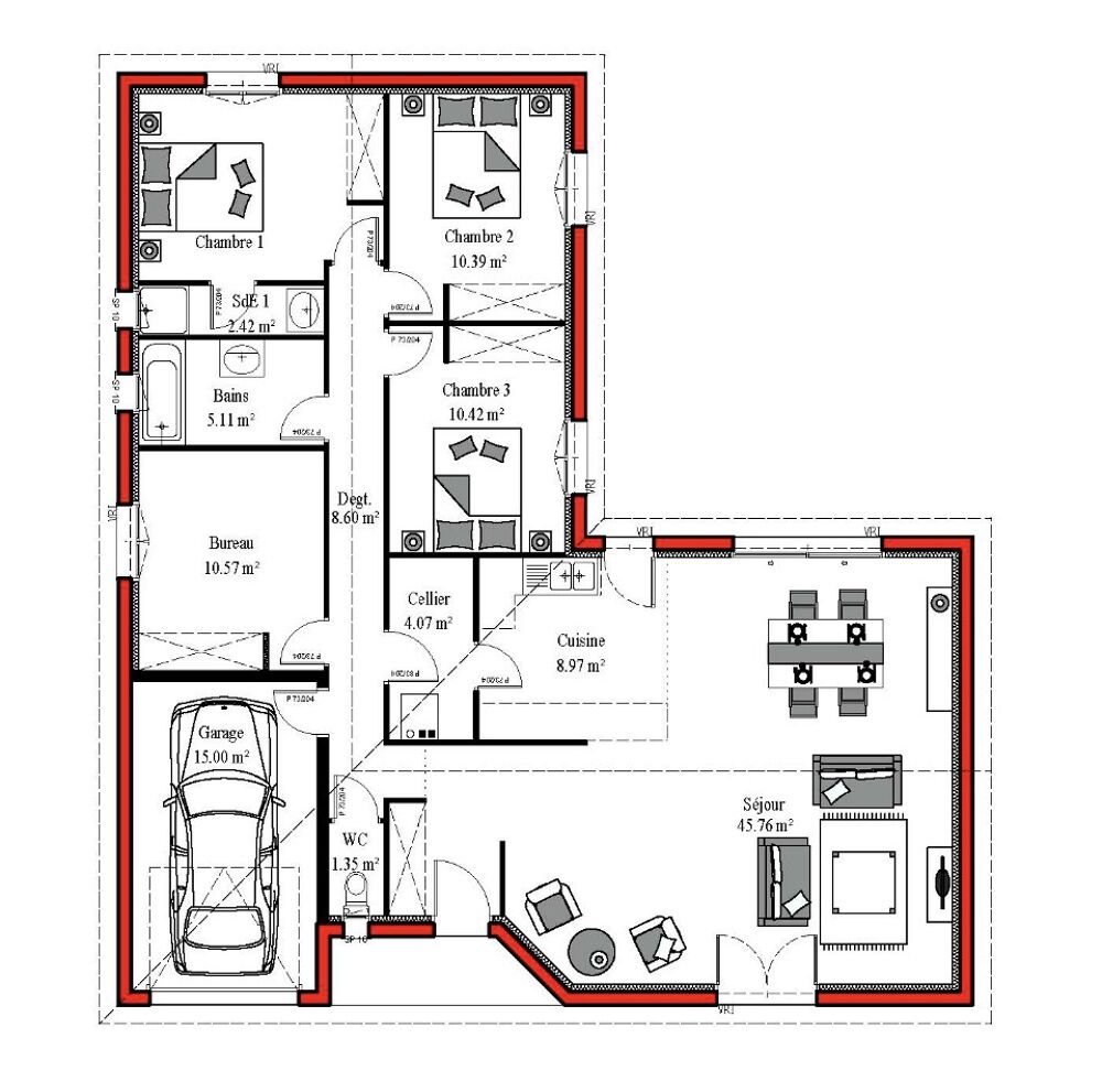 Idée de réalisation en modèle prêt à décorer sur l'un de nos terrains partenaires, sous réserve de disponibilités. Voir détails en agence.
