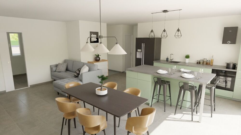 Une grande pièce de vie avec sa cuisine donnant sur les extérieures pour profiter au maximum du jardin.
