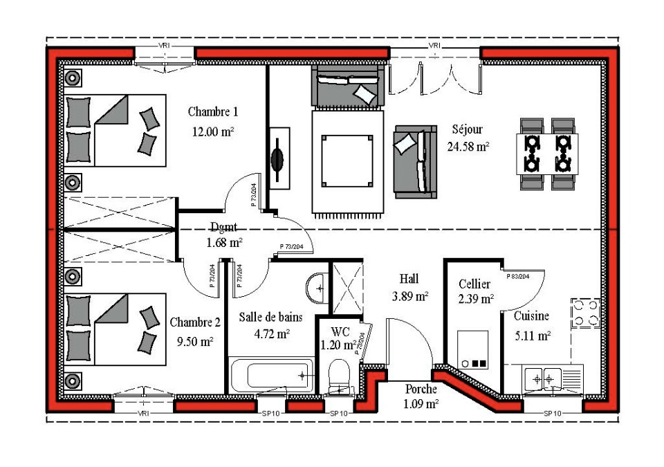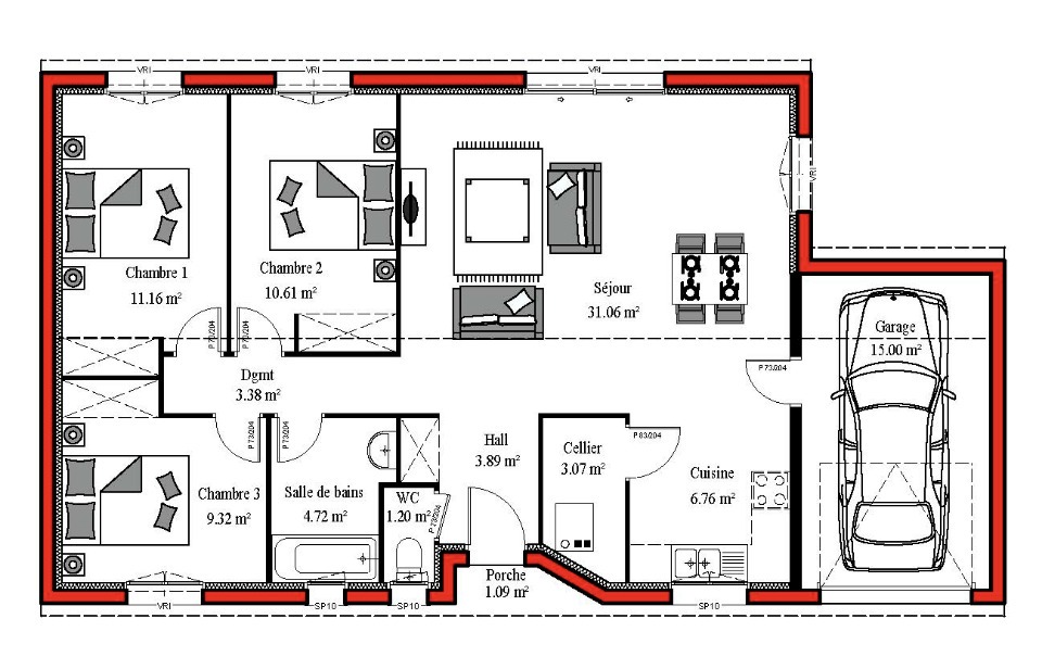 Surface habitable : 85m2.