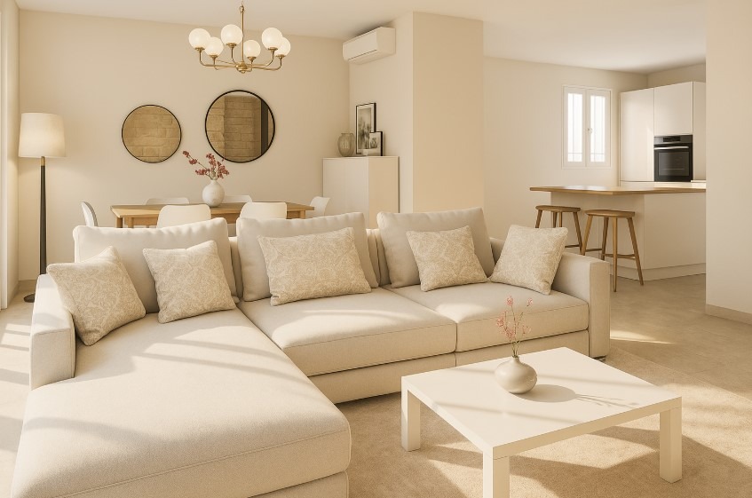 Toutes nos maisons sont livrées avec du carrelages 60 x 60 cm, 90 x 90 cm ou 120 x 120 cm, au sol dans toutes les pièces, sanitaires et faïences dans les pièces d'eau.