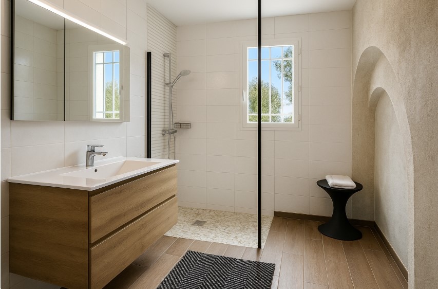 Vous pourrez choisir vos carrelages, faïences, meubles des pièces d'eau...