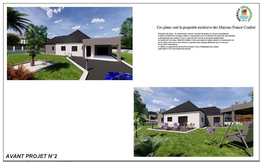 Terrain proposé par un partenaire foncier selon disponibilités et autorisation de publicité au prix de 71 000 €. Hors droit d'enregistrement et frais de notaire. Maison proposée, avec un contrat de construction de maison individuelle, dans le cadre de la loi du 19/12/1990, au prix de 207 600 € (Hors branchements et raccordements, papiers peints, peintures, revêtement de sol dans les chambres, qui sont chiffrés dans les travaux qui restent à charge du client. Tarif modifiable sans préavis). Étiquette énergie : A. Différents modèles disponibles pour ce terrain. Assurances et garanties du constructeur comprises (RC professionnelle, décennale, dommage ouvrage).