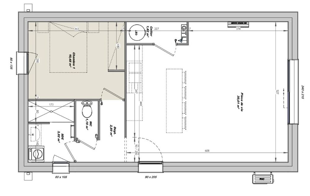 Nombre de chambres : 1.