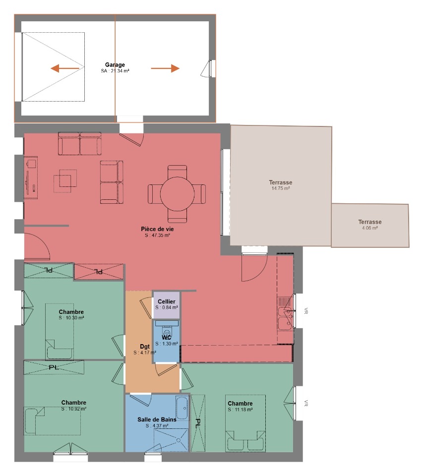 Un garage accolé pouvant être ajouté selon vos besoins.