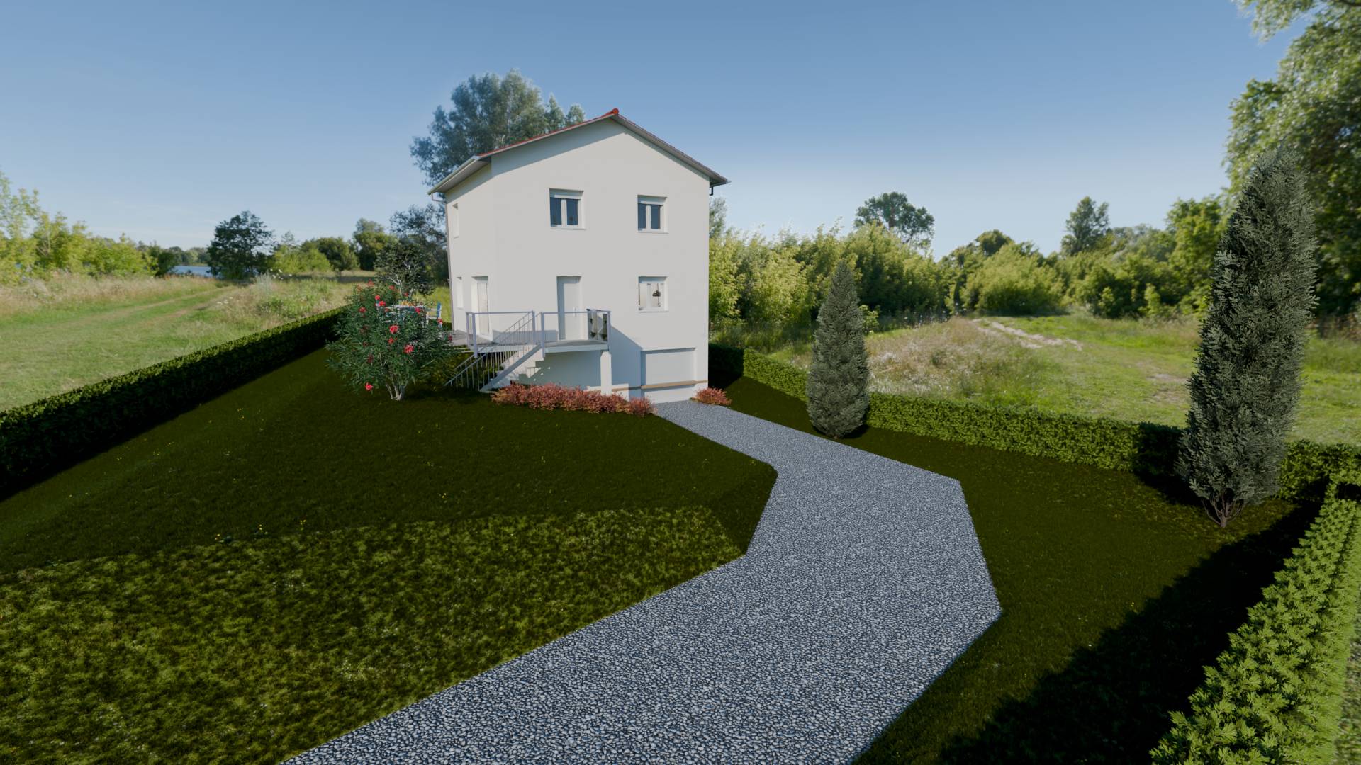 Sur ce grand et beau terrain en légère pente d'un peu plus de 1000 m², au calme et proche de la nature, nous vous proposons cette jolie maison contemporaine à étage d'environ 92 m² sur sous-sol complet de 50 m². Simple et fonctionnelle, elle est composée d'une belle pièce de vie ouverte sur la cuisine. Un cellier de 5 m² permet d'optimiser le rangement. A l'étage l'espace nuit de trois belles chambres, avec salle de bains et WC séparé.