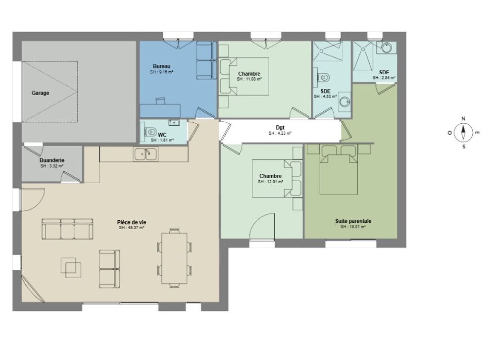 Terrain proposé par un partenaire foncier selon disponibilités et autorisation de publicité au prix de 165 000 €. Hors droit d'enregistrement et frais de notaire. Terrain + Maison proposés au prix de 274 000 € (Hors branchements et raccordements, papiers peints, peintures, revêtement de sol dans les chambres. Tarif modifiable sans préavis). Etiquette énergie : A. Différents modèles disponibles pour ce terrain. Assurances et garanties du constructeur (RC professionnelle, décennale, dommage ouvrage, garantie de remboursement de l'acompte, livraison à prix et délai convenu) : HEXAOM Services est enregistré auprès de l'ORIAS en tant que Courtier en financement, Niveau 1, sous le numéro 14001345.