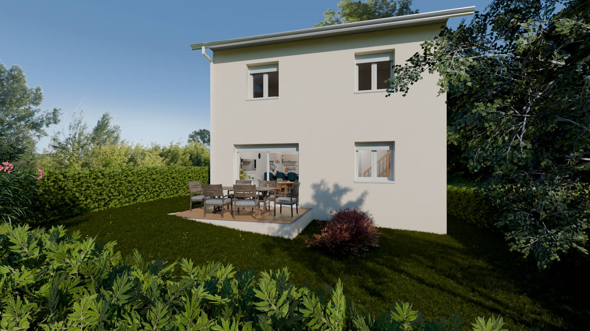 Cette villa RE 2020 vous garantit des économies d'énergie et un confort optimal, grâce à ses prestations de qualité : pompe à chaleur, volets roulants électriques connectés, et bien plus encore. Projet personnalisable selon vos besoins.