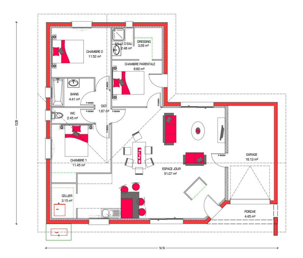 Surface habitable : 100m2.