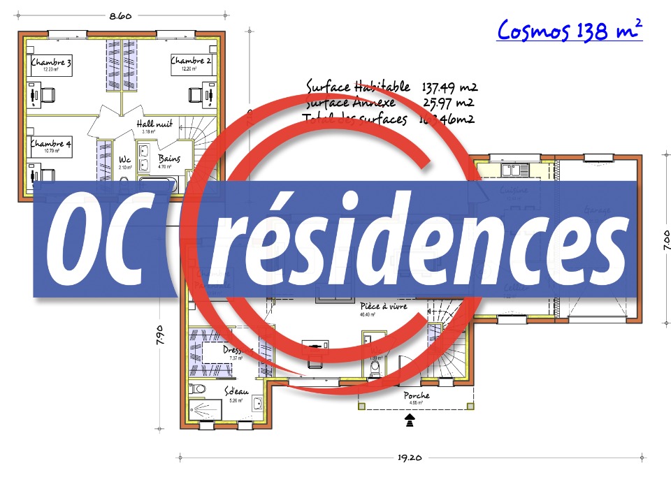 Pour vous, nous avons créé l'Architecture de demain. Cette villa est à la pointe de l'évolution de la maison individuelle. Le modèle COSMOS est composé au rez-de-chaussée, d'un hall d'entrée avec WC et placard donnant dans un bel et lumineux espace de vie. Vous profiterez d'une cuisine lumineuse et ouverte sur le jardin tout en profitant du confort d'un grand cellier de 7 m² communiquant sur un garage de 21m². La suite parentale de 23 m² vous donnera un accès sur la terrasse directement. L'étage vous offrira un espace nuit avec trois belles chambres de 12 m² environs, une Salle de Bain et un WC Indépendant. Oc résidences est votre constructeur sur mesure en Occitanie, depuis 1983