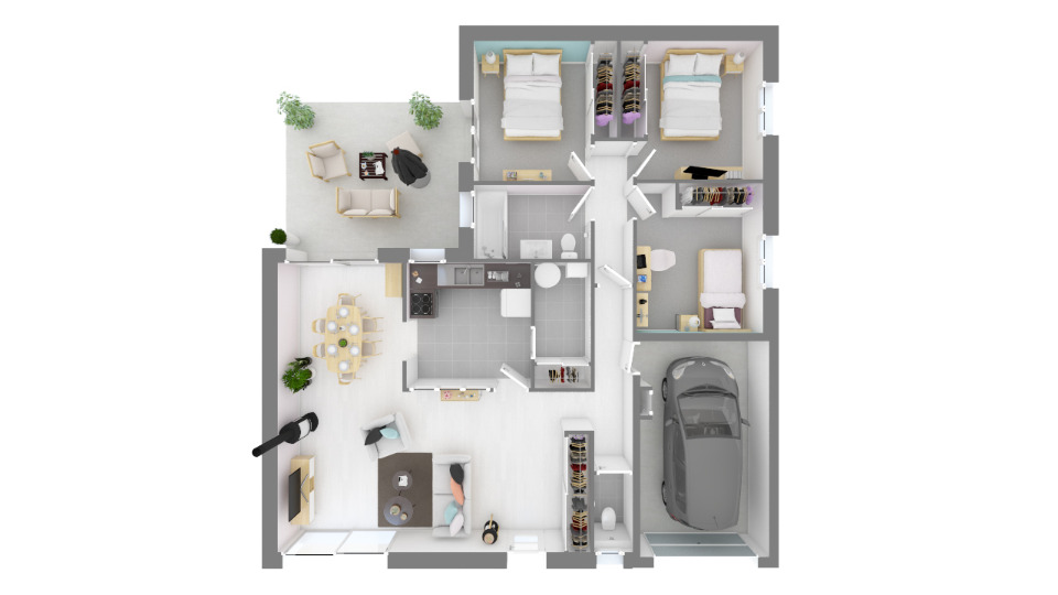 "Votre agence maisons France Confort d'Aucamville vous propose sur la commune de MIREPOIX SUR TARN ce projet terrain + maison sur cette parcelle de 640 m².Tout en douceur de vie, cette maison s'inscrit naturellement dans une architecture en L, permettant ainsi une séparation judicieuse entre l'espace jour et l'espace nuit. Le séjour traversant et les différentes possibilités d'accès à la maison et au garage permettent diverses implantations dans le respect de l'orientation et de la nature environnante. Ce modèle dispose de 3 chambres et d'une salle de bains. L'espace jour donne accès au cellier et au garage.