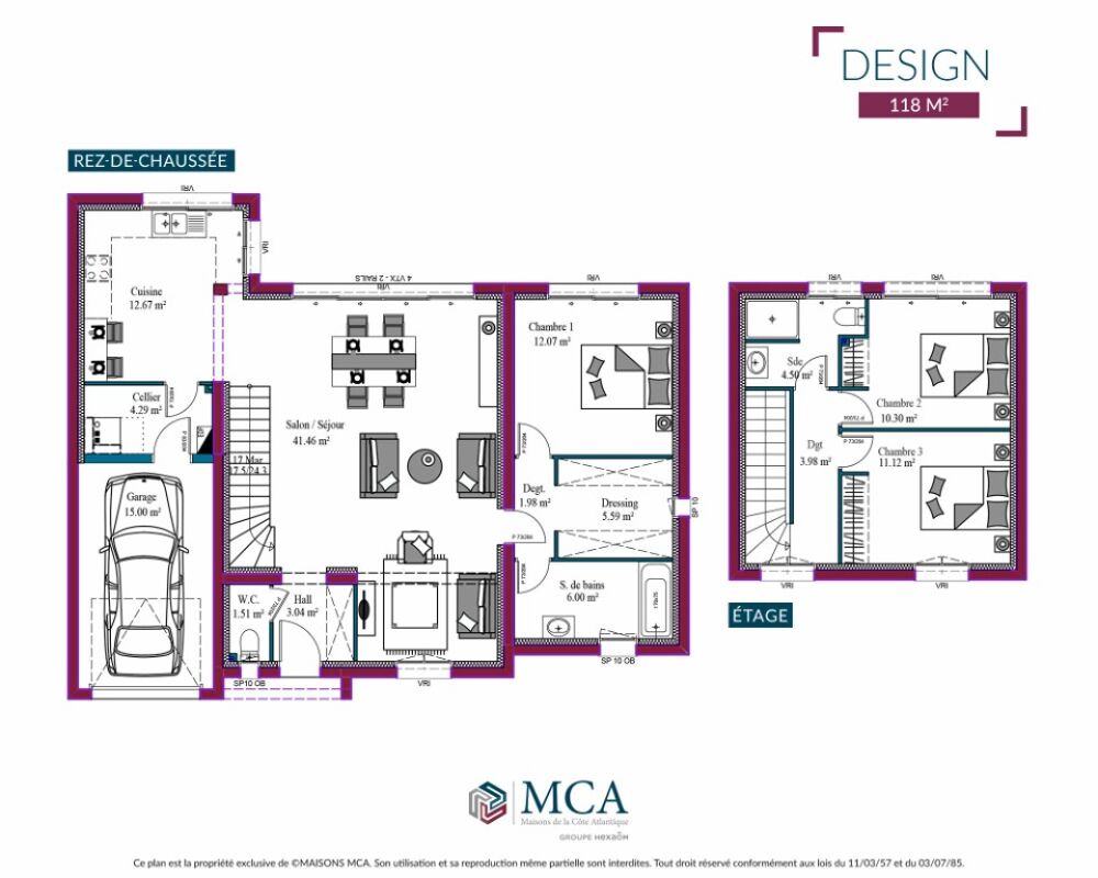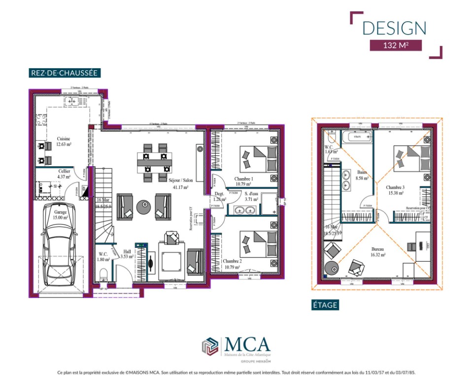 Maison à étage de 132 m2 , 3 chambres, pièce de vie lumineuse, garage intégré