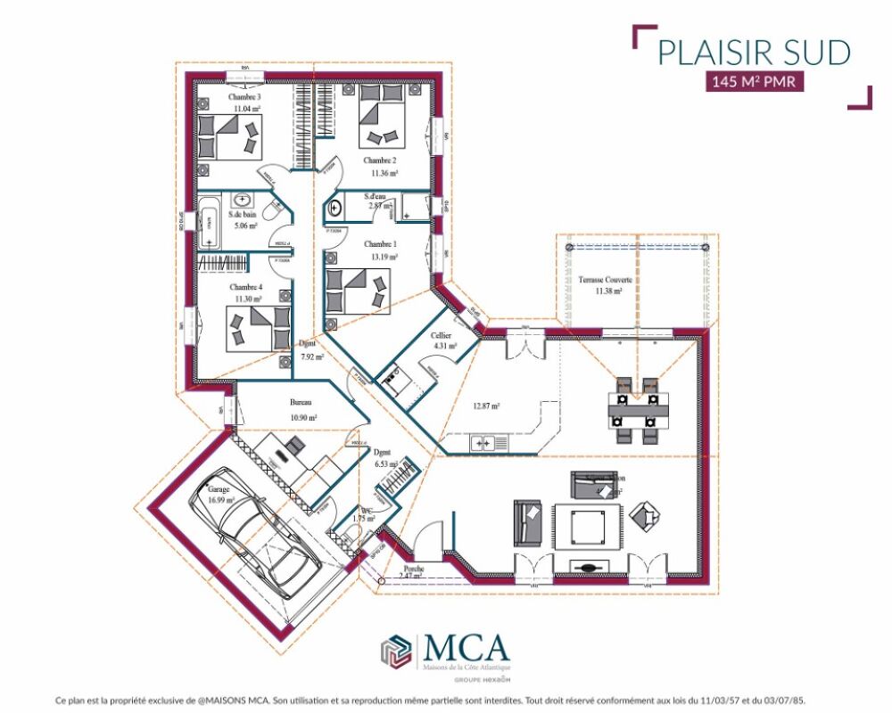 Maison de 146 m2, 4 chambres, pièce de vie lumineuse, garage intégré