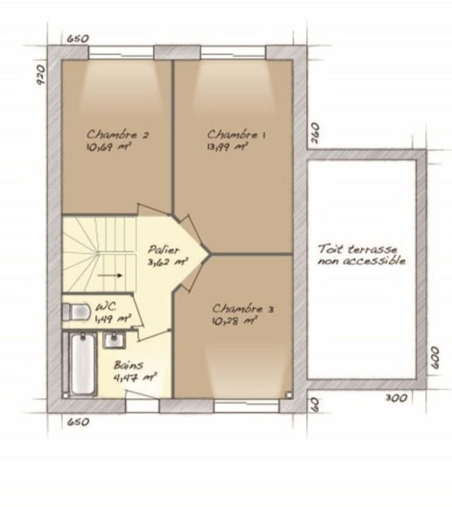 Nombre de chambres : 3.