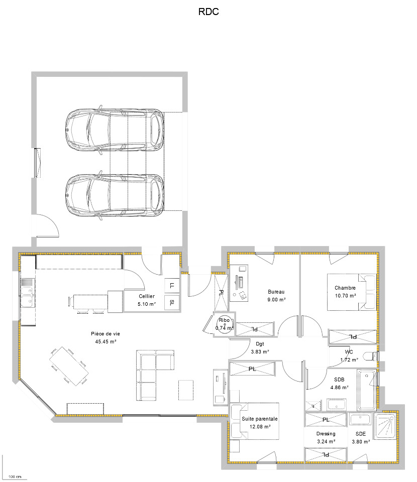 Surface habitable : 103m2.