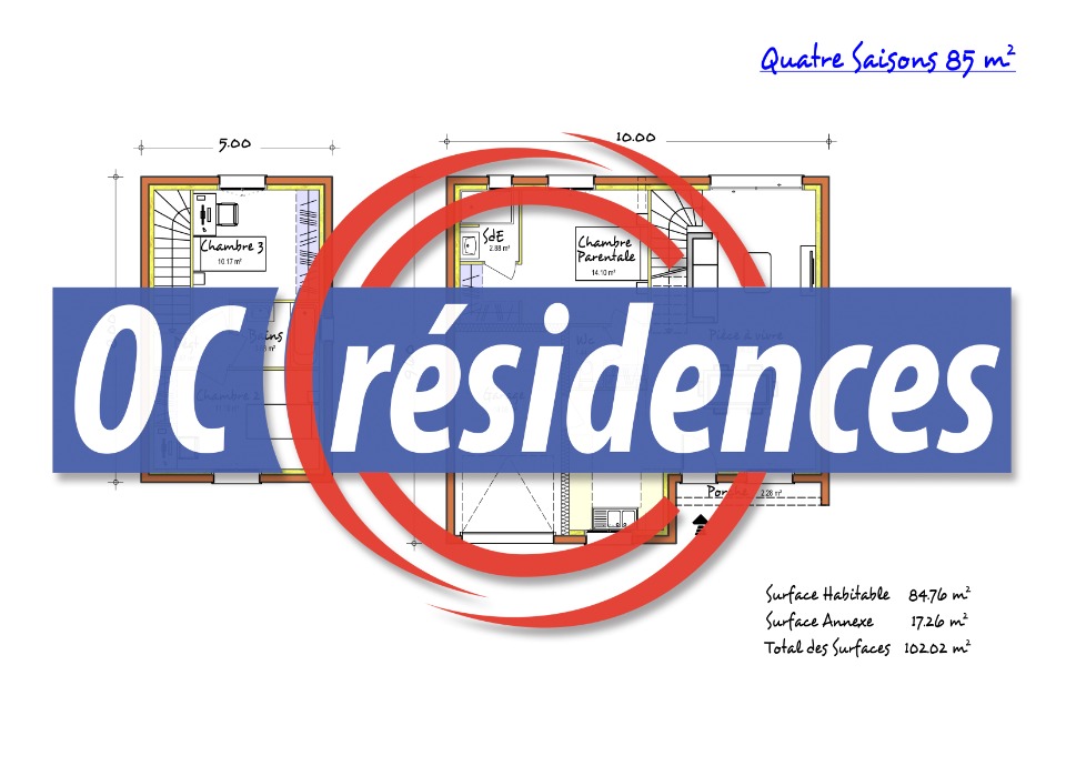 Le modèle Quatre Saisons est une maison à étage qui vous plaira par sa simplicité et son agencement pensé pour améliorer votre confort de vie. Au rez de chaussée, vous disposerez d'un espace vie de 39 m² communiquant sur un garage, d'une belle suite parentale indépendante de 17 m² et d'un coin rangement avec un WC indépendant. A l'étage, vous trouverez deux belles chambres avec une salle de bains. Cette maison est à construire dans le département du Tarn, l'Aude, l'Hérault, la Haute-Garonne ainsi que les Pyrénées Orientales par Oc résidences, votre constructeur sur mesure en Occitanie.Nos offres de terrains sont proposées en collaboration avec nos partenaires fonciers pour des maisons dans le cadre de la loi du 10/12/1990, selon disponibilité.