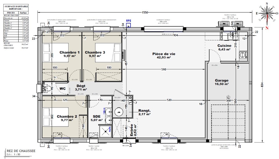 Surface habitable : 95m2.