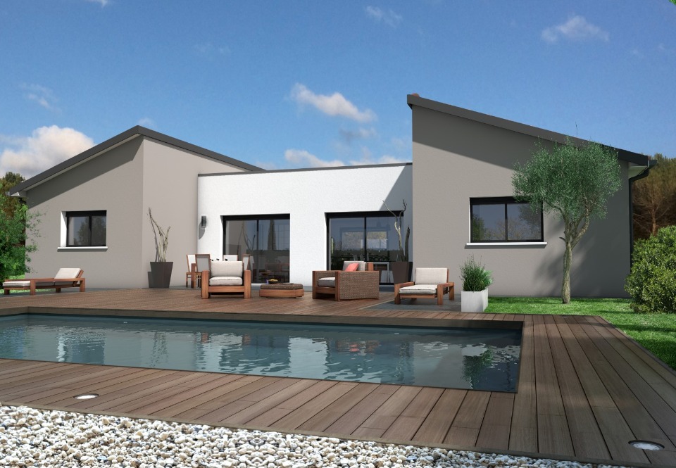 Sa forme de U vous permet aussi un aménagement extérieur design, avec une grande terrasse ou une piscine au milieu. Sa toiture pourra être décliné de plusieurs manières, afin d'harmoniser son architecture à votre goût.