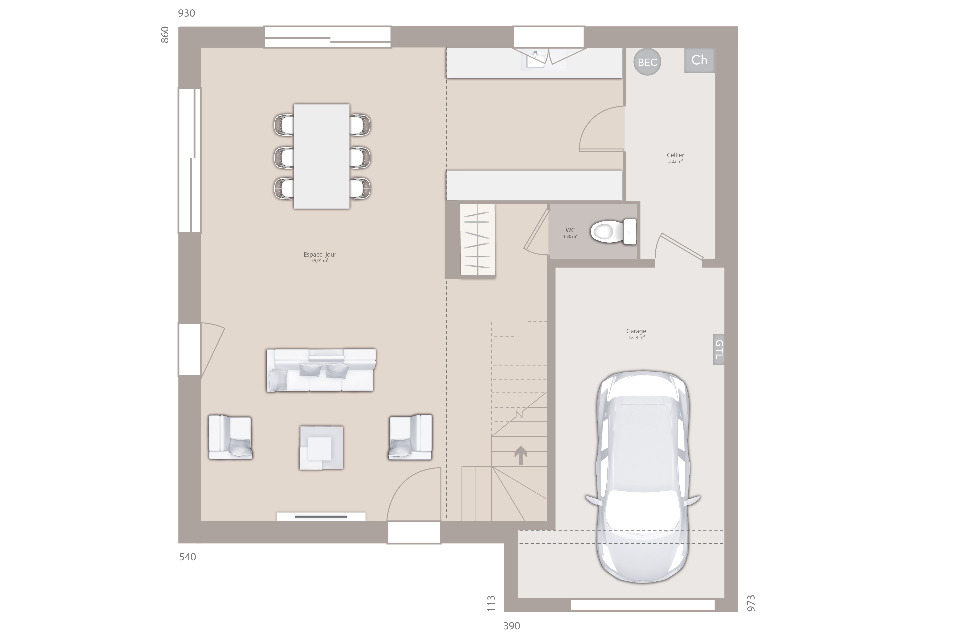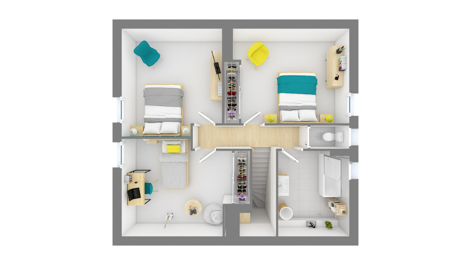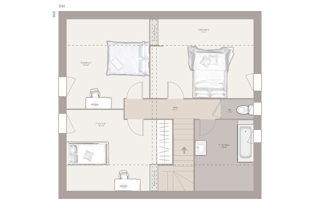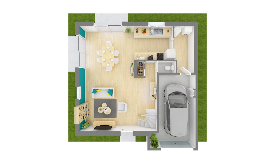 Maison livrée clef en main. Reste à charge client la cuisine, la peinture et revêtements de sols dans les chambres.