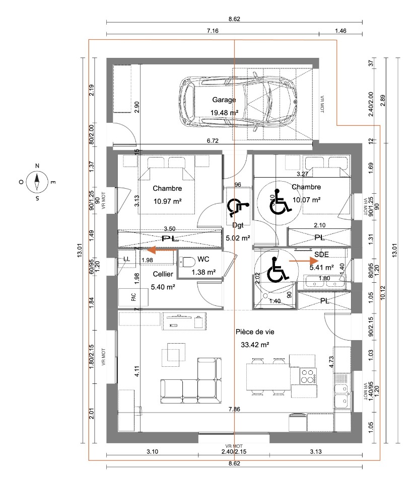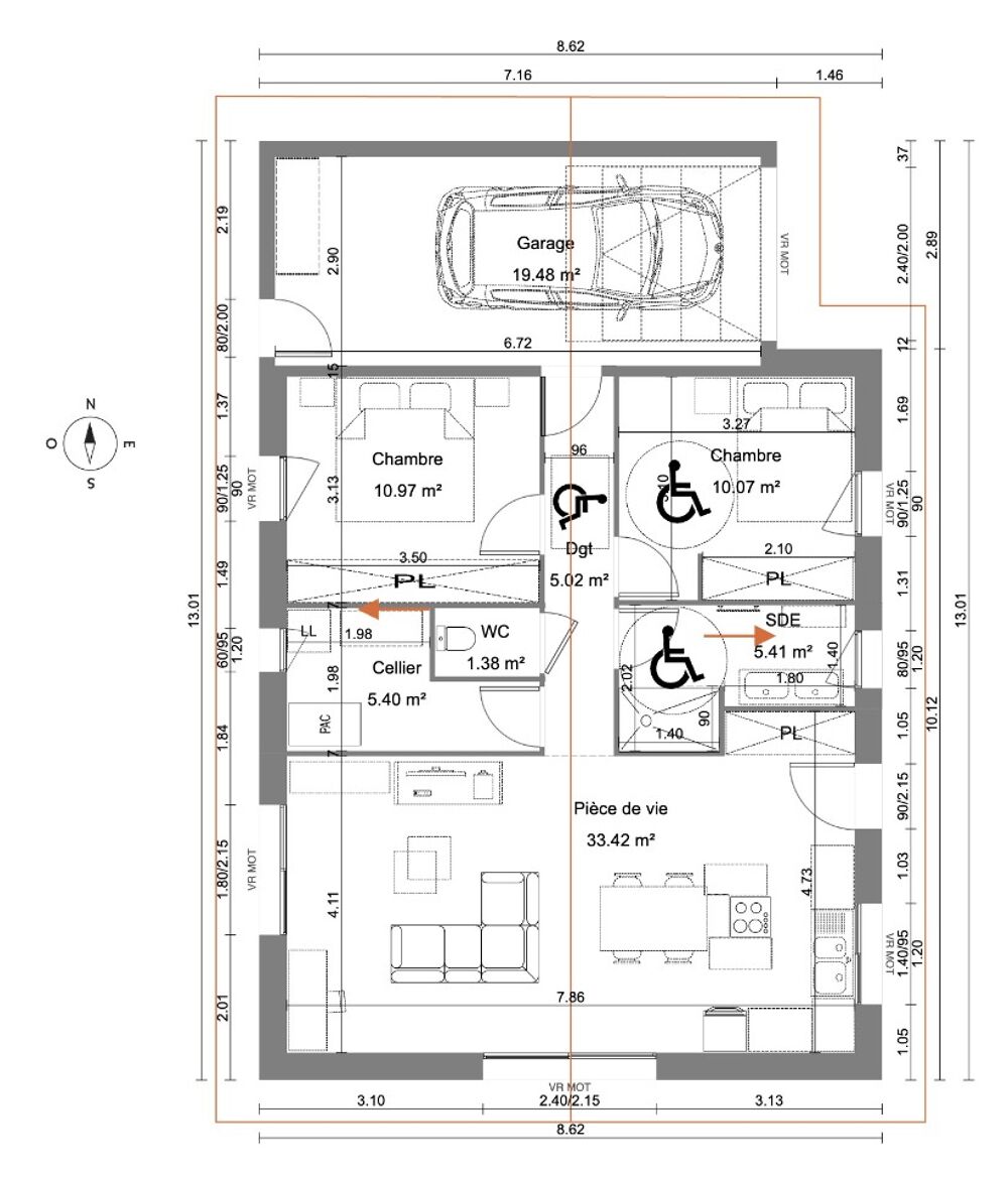 Surface habitable : 72m2.