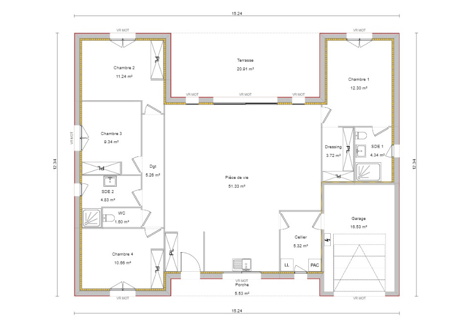 Quatre chambres, dont une suite parentale : l'agencement intelligent inclut une suite parentale avec dressing et salle d'eau privative, offrant un espace de repos et d'intimité.