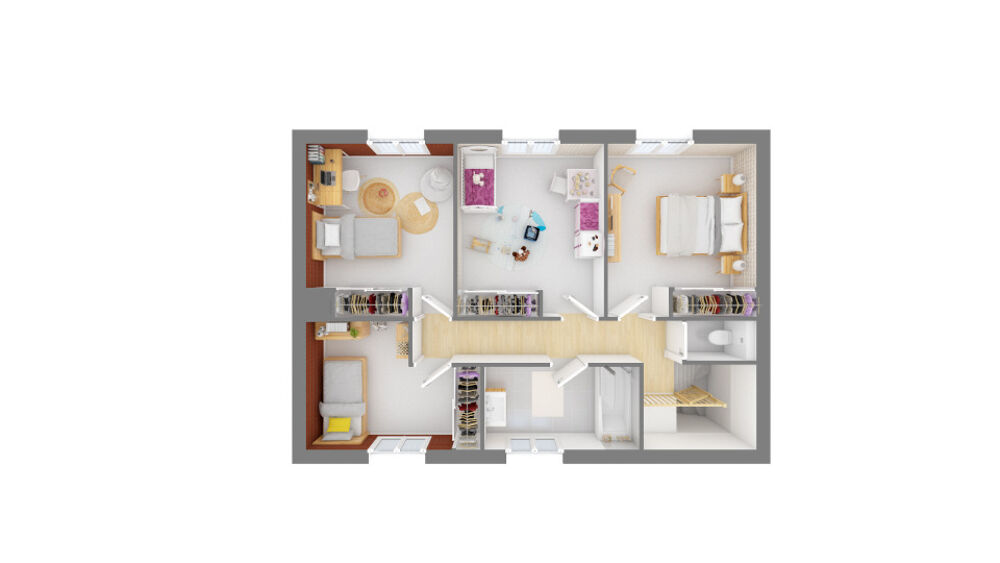 La villa BASTIDE (5 chambres) : Véritable coeur de la maison, la pièce de vie de 50 m² invite à la convivialité. Elle propose une suite parentale au RDC et 4 belles chambres à l'étage pour les enfants. Ce modèle RE2020 est entièrement personnalisable selon vos souhaits. Les frais de notaire ne sont dus que sur le terrain.