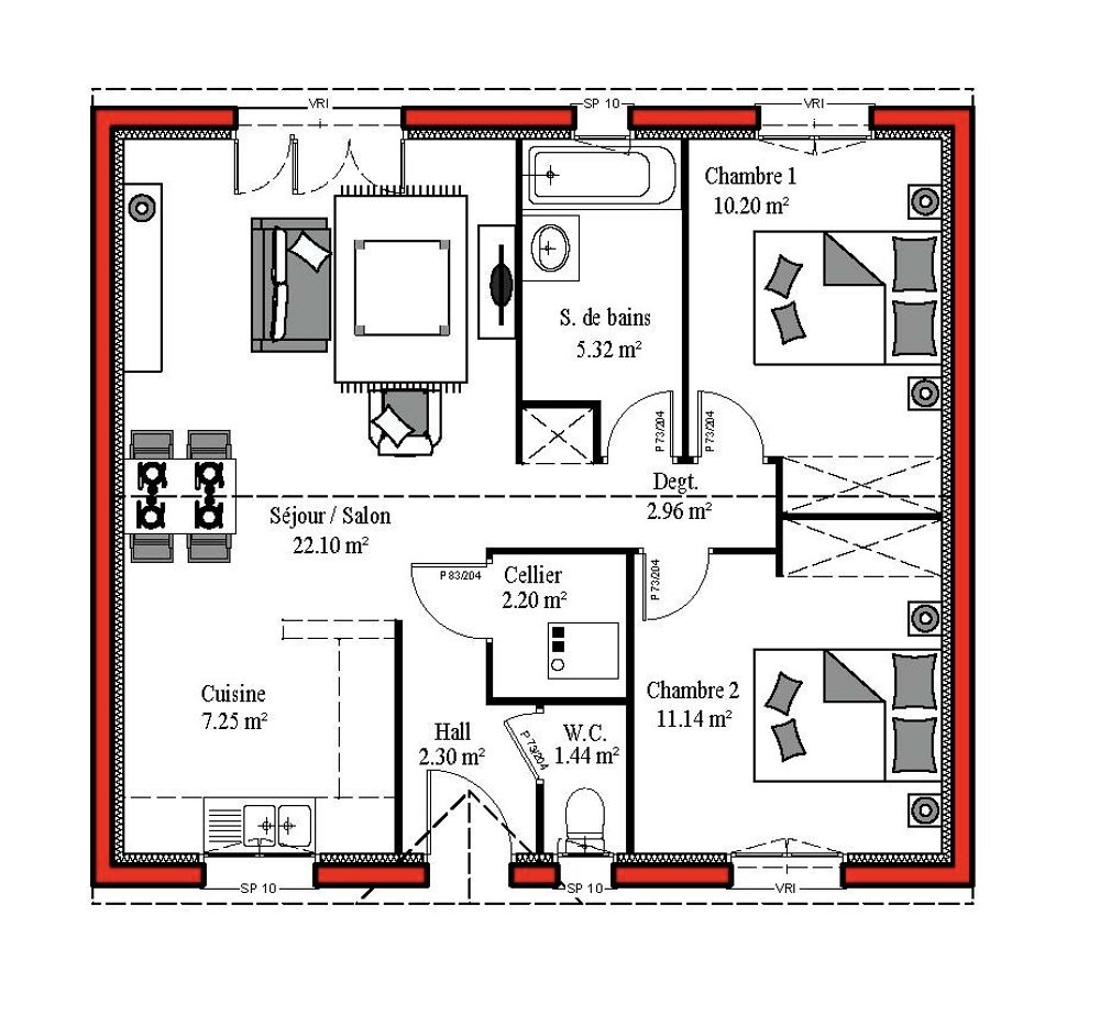 Surface habitable : 78m2.