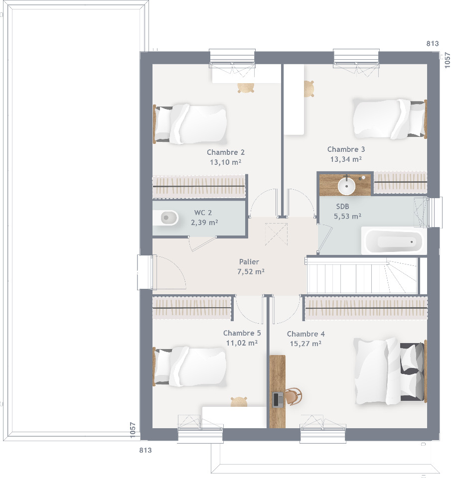 Nombre de chambres : 5.