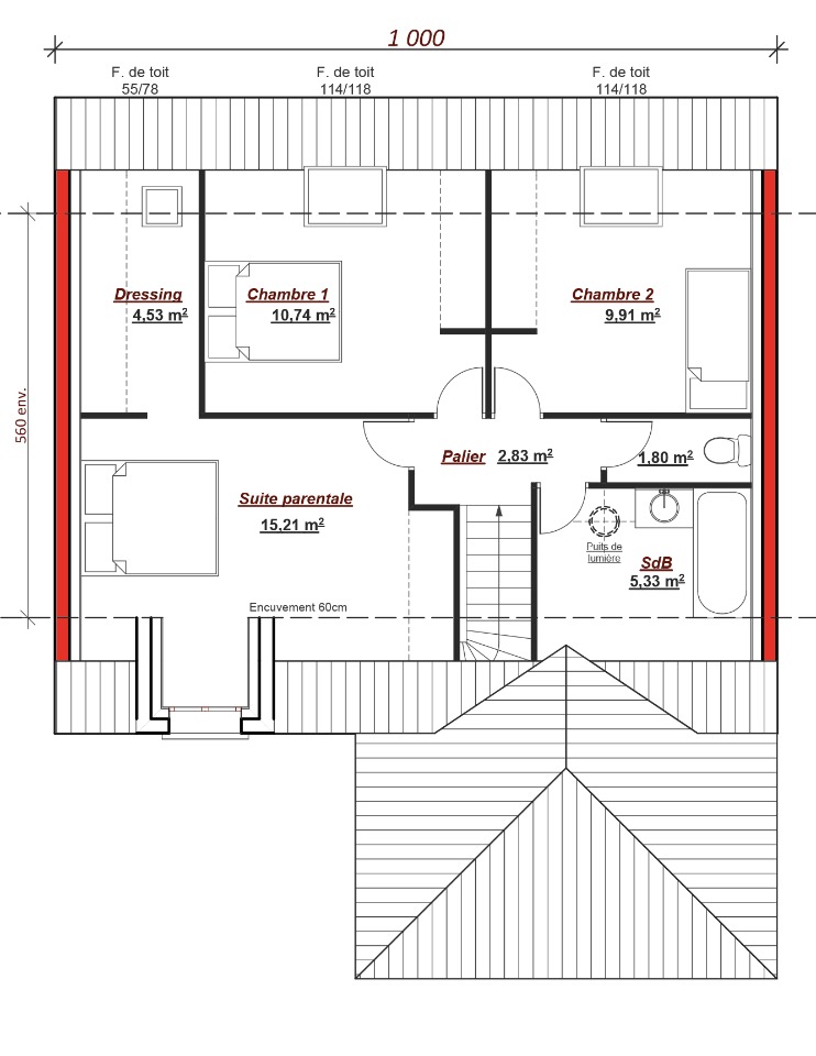 Nombre de chambres : 3.