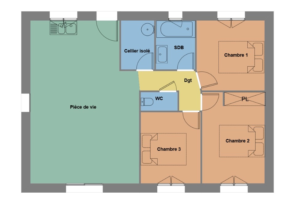 En vente : à 6 km de la côte atlantique et à 15 km de Lorient, dans un quartier recherché de Clohars-Carnoët (29360), notre agence Maisons de l'Avenir Lorient est heureuse de vous proposer cette maison de 4 pièces de plain-pied de 70 m². Elle comporte trois chambres, une cuisine et une salle de bains.