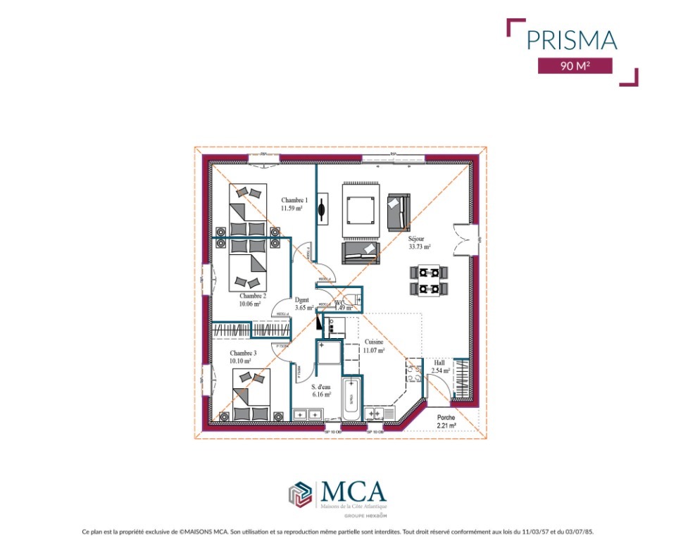 Quelque soit l'orientation de votre terrain, la Prisma vous permet de profiter d'une exposition Sud du salon/séjour. Vous serez également séduit par son porche couvert.