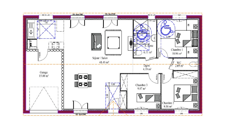Jean Philippe VILLENAVE Odes Maisons MCA, vous propose d'adapter le modèle Arpège, sur ce beau terrain plat de 675m2 situé sur la commune de Saint Yaguen, à proximité de Mont de Marsan.Spécialement conçu pour les investisseurs, adaptée aux normes PMR pour le locatif, cette maison dispose d'un hall d'entrée avec placard, un beau salon / séjour tourné vers le jardin, et une cuisine ouverte, soit un espace de vie de plus de 40m2. Le coin nuit est composé de 3 chambres avec placards, une salle d'eau et un WC séparé.