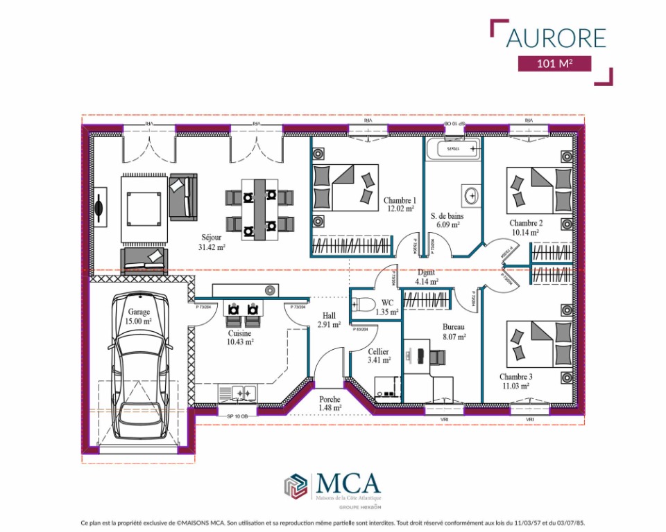 Jean Philippe VILLENAVE Odes Maisons MCA, vous propose le modèle Paradis, implanté sur ce beau terrain d'environ 1633m², sur la commune de Labastide d'Armagnacq, à 15 minutes de Roquefort.Une maison aux lignes sobres dont l'entrée est marquée par un agréable porche. D'une superficie de 101m2, ce modèle offre un hall d'entrée avec cellier, un beau séjour de plus de 30m2 tourné vers le jardin, et une grande cuisine fermée. L'espace nuit est quant à lui composé de 3 chambres avec placards, un bureau, une salle de bains et WC séparés. Un garage de 15 m2 vient compléter ce bel ensemble.