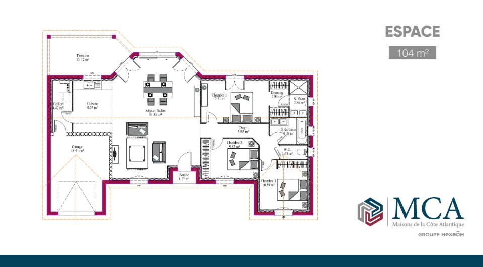 Surface habitable : 104m2.